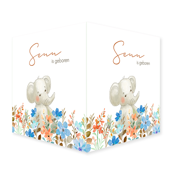 Vrolijk en lief raambord voor de geboorte van een jongen met een olifantje in een bloemenveld.