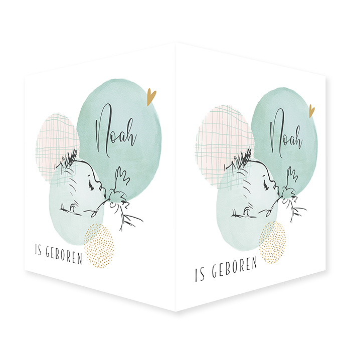 Raambord met een lieve illustratie van een baby in lijntekening met verschillende watercolor cirkels en een goudkleurig hart.