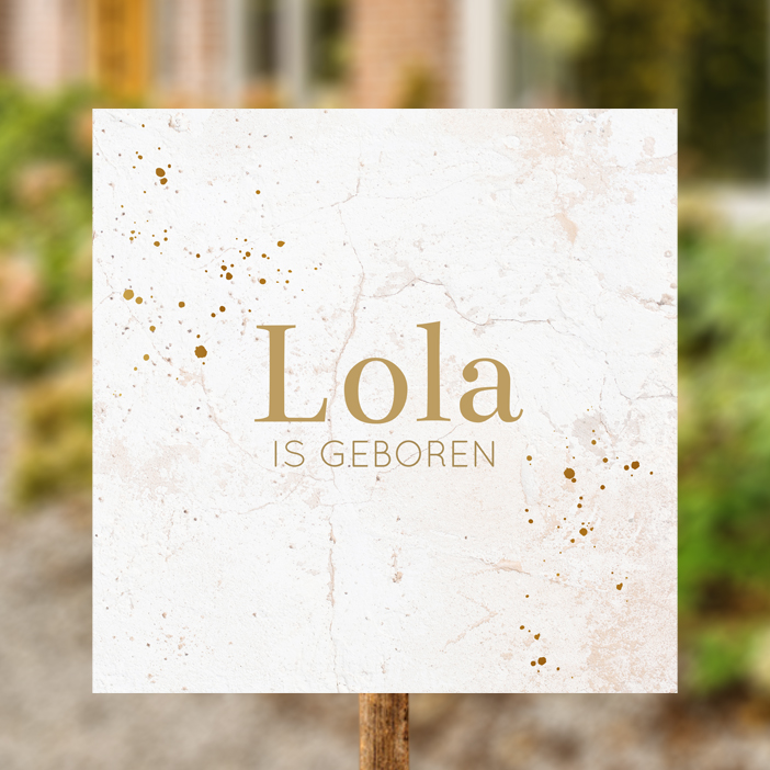 Tuinbord met een marmerlook in de achtergrond en spetters vanuit twee hoeken.