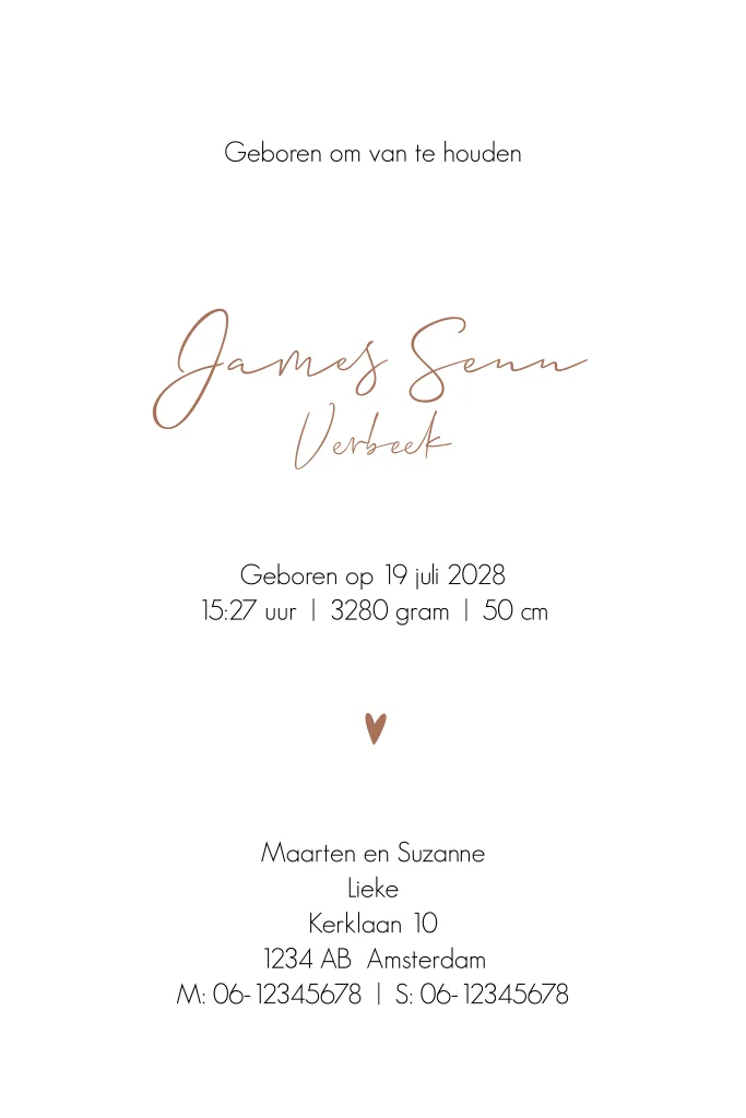 Anton Pieck geboortekaart met een baby zittend op de rug van een ooievaar bij de voordeur van een huis. De tekst onder de afbeelding staat in hoogglans.