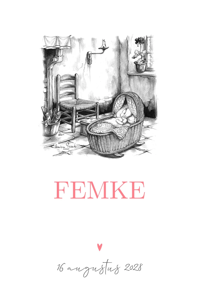 Geboortekaartje Anton Pieck baby rotan schommelwiegje