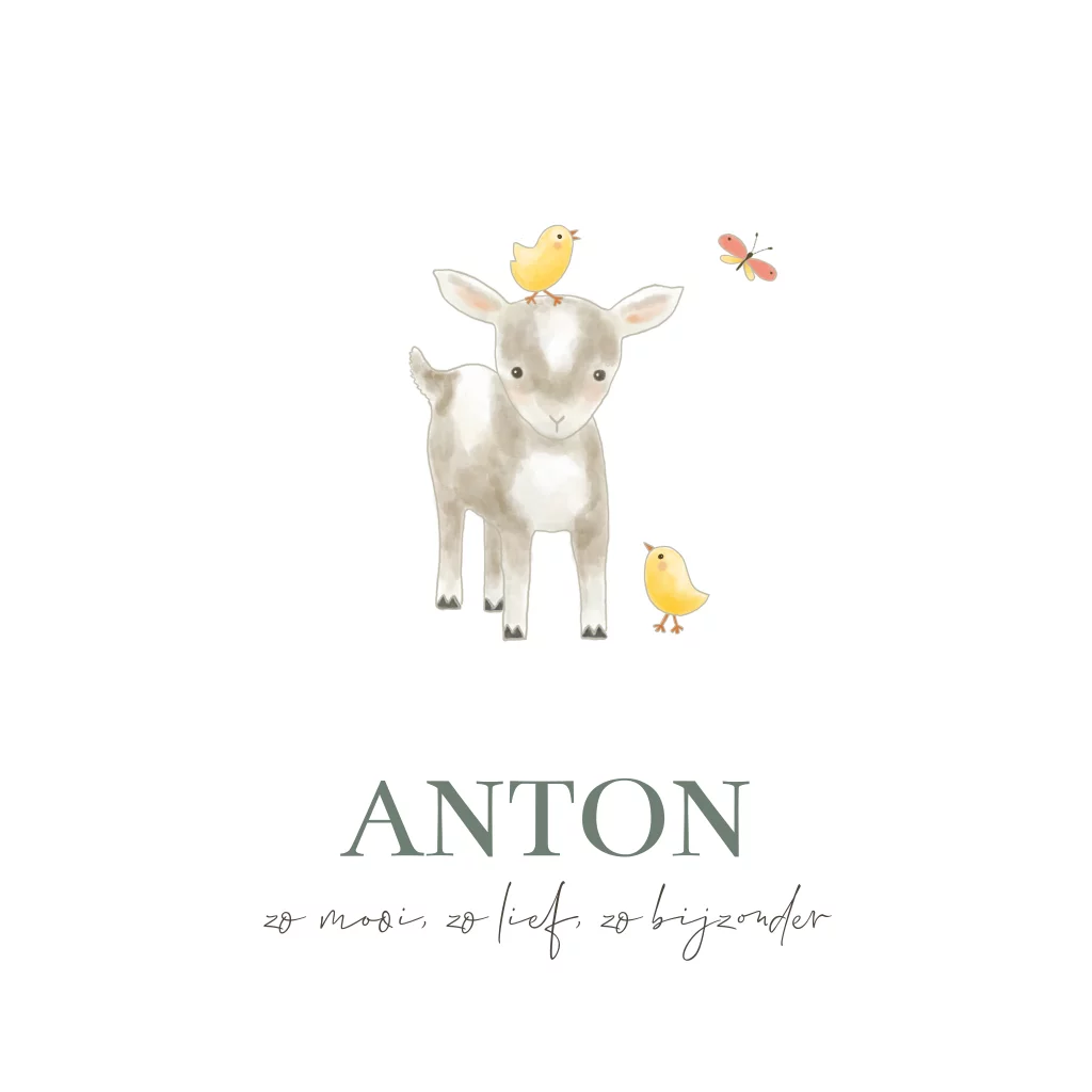 Geboortekaart boerderijdieren geitje kuikentjes en vlinder