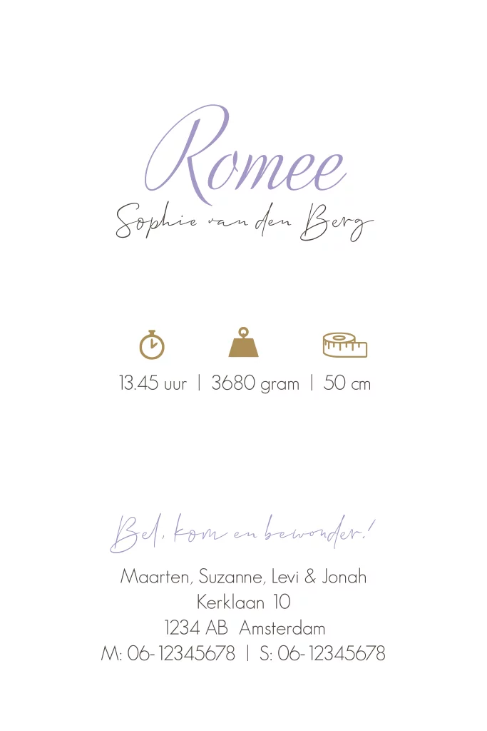 Geboortekaart staand 3e kindje in kleur