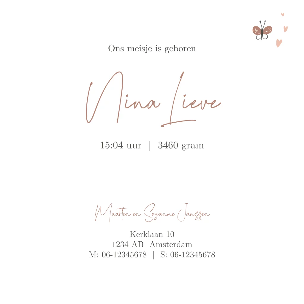 Geboortekaartje meisje dieren in roze en bruin