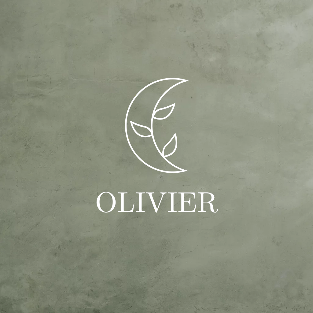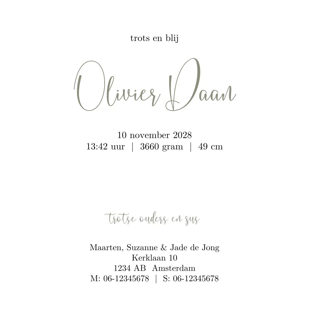 Stoer geboortekaartje met een maan met blaadjes in lijntekening op een groene betonlook achtergrond. De naam en de maan staan in goudfolie.