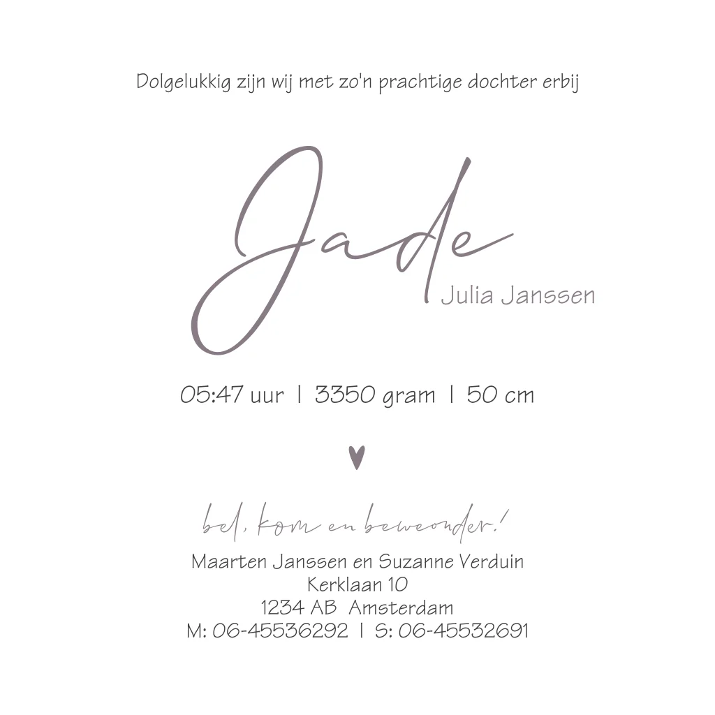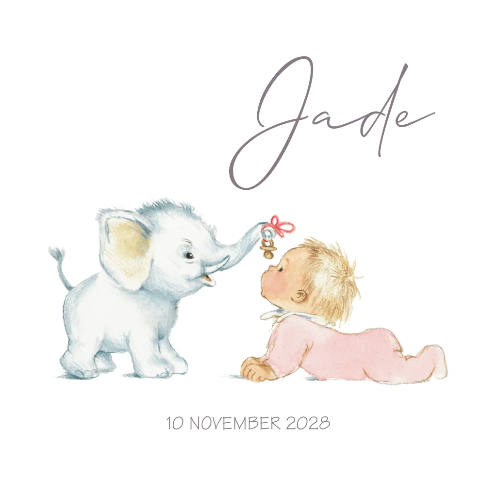 Geboortekaartje pentekening meisje baby olifant