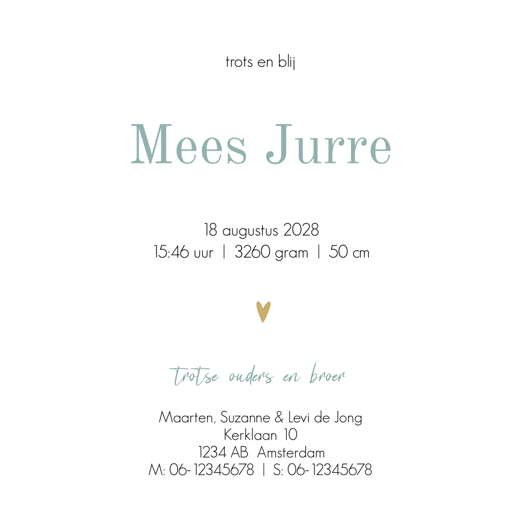 Geboortekaartje tweede kind pentekening sepia goudfolie
