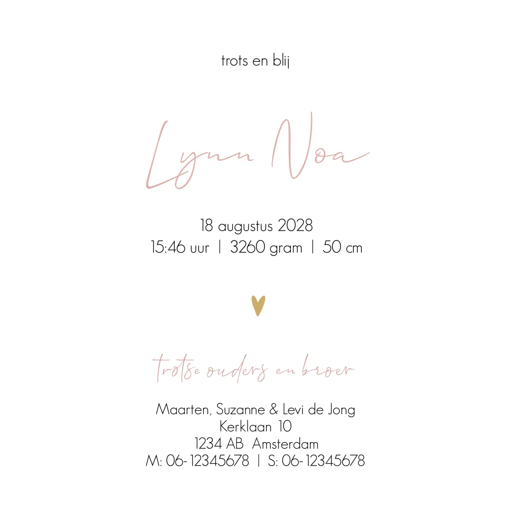 Pentekening geboortekaart baby met hond roségoudfolie
