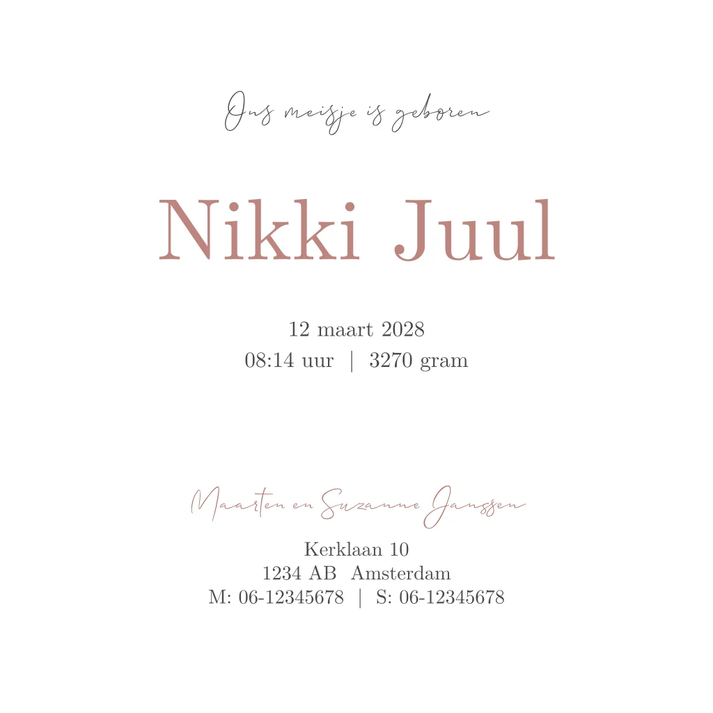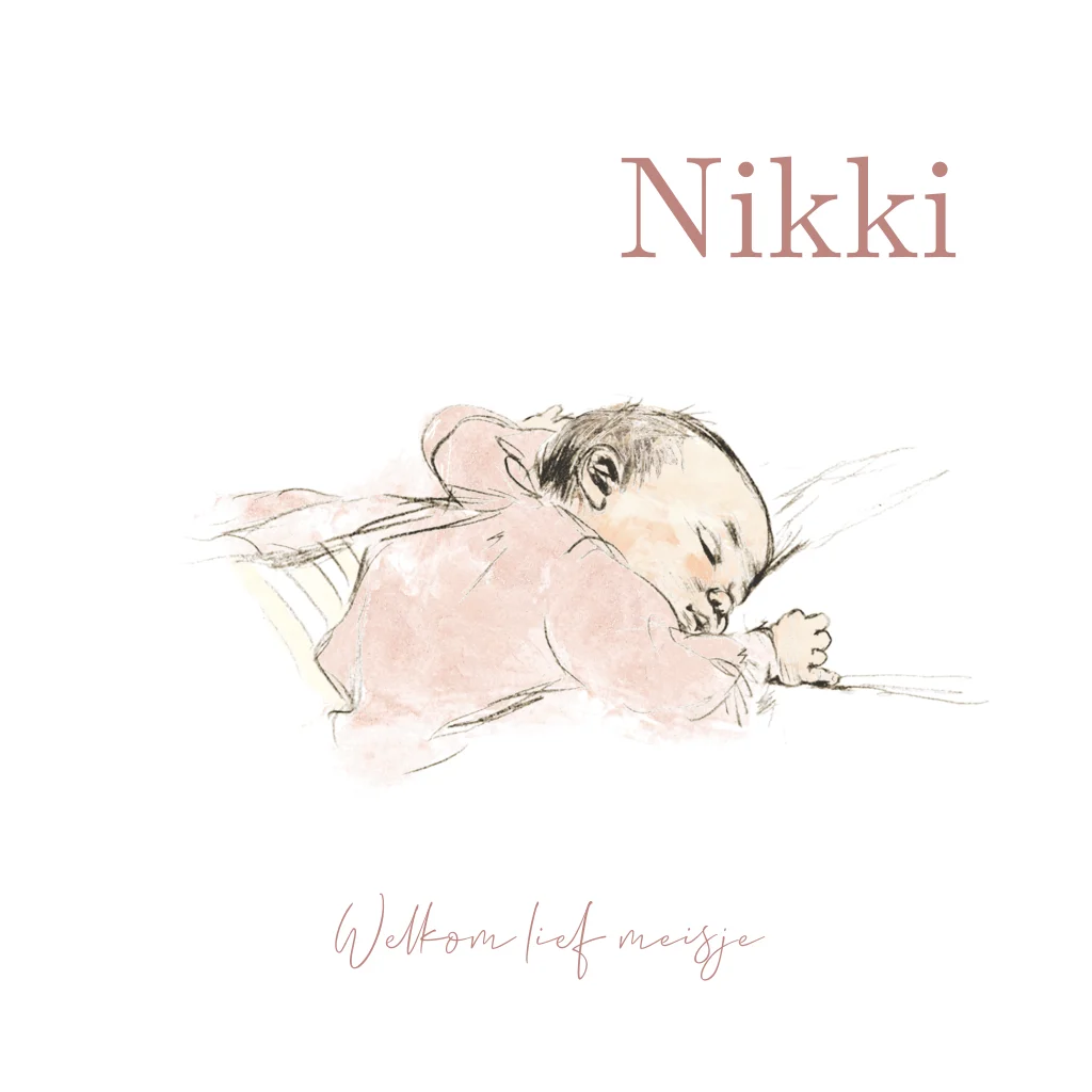 Pentekening geboortekaartje baby meisje