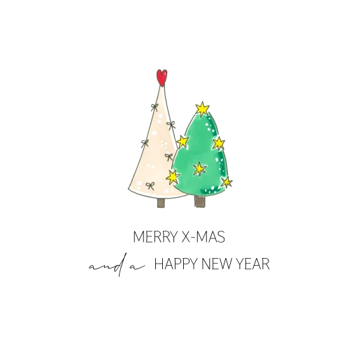 Een keramiek tegeltje met twee vrolijk gekleurde kerstbomen. Een lichtbeige gekleurd boompje met strikjes en een hartje als piek en een groene kerstboom met gele sterren en de tekst Merry Christmas and a happy New Year. De tekst is aan te passen.