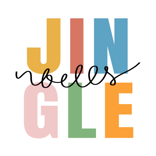Een keramieken tegeltje met de tekst "Jingle bells" waarvan het woord "Jingle" in vrolijke kleuren staat en "bells" in een geschreven letter. De kleur van de achtergrond en de tekst kun je zelf aanpassen. Een messingkleurig ophanghaakje wordt meegeleverd.
