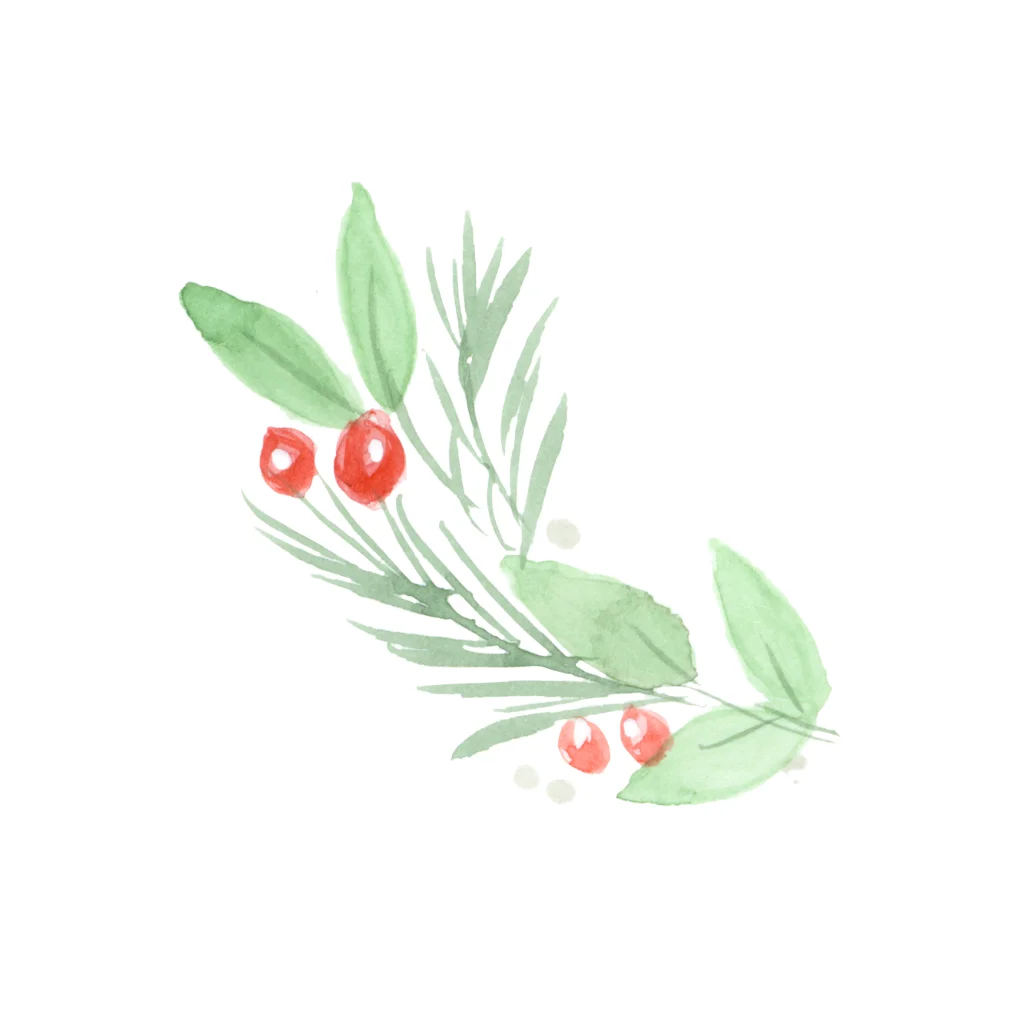 Sluitzegel voor kerstkaarten met een illustratie van een groen mistletoe takje met rode besjes. De grootte van een sluitzegel is 35 mm. 25 sluitzegels per vel.