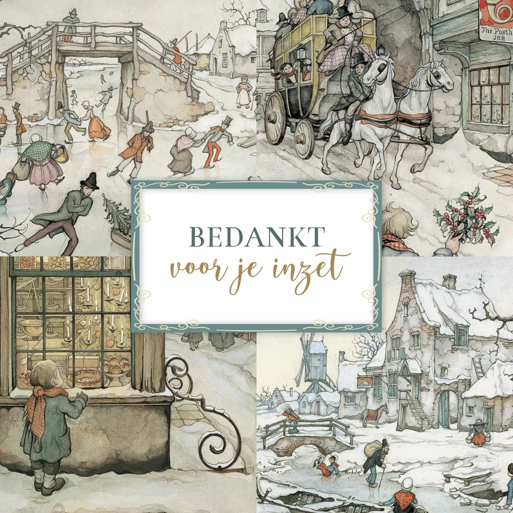 Zakelijke kerstkaart medewerkers Anton Pieck vier illustraties